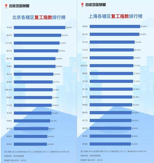 (北京及上海市各辖区复工指数排行榜)
