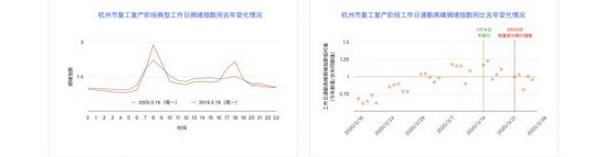 在全国部分重点城市疫期道路交通状况的分析中,清华大学研究团队通过对百度地图的复工指数和道路交通拥堵指数相对值(今年拥堵指数值/去年同期值,表征拥堵恢复水平)分析发现,二者总体呈现正相关关系,这表明随着复工复产的推进,城市交通拥堵水平也在逐步上升。